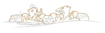 Bien vite des jambes poussent à l’animal qui cherche son chemin vers la rivière. Mais sur sa route s’interposent deux malfaisants affamés…